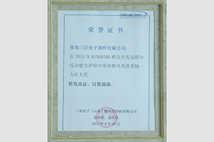 Qingdao Sankyo Electronics Components won the gold medal of SSDP Mould Excellent Cooperation Agency by Samsung Electronics (Shandong) Digital Printer Co., Ltd.